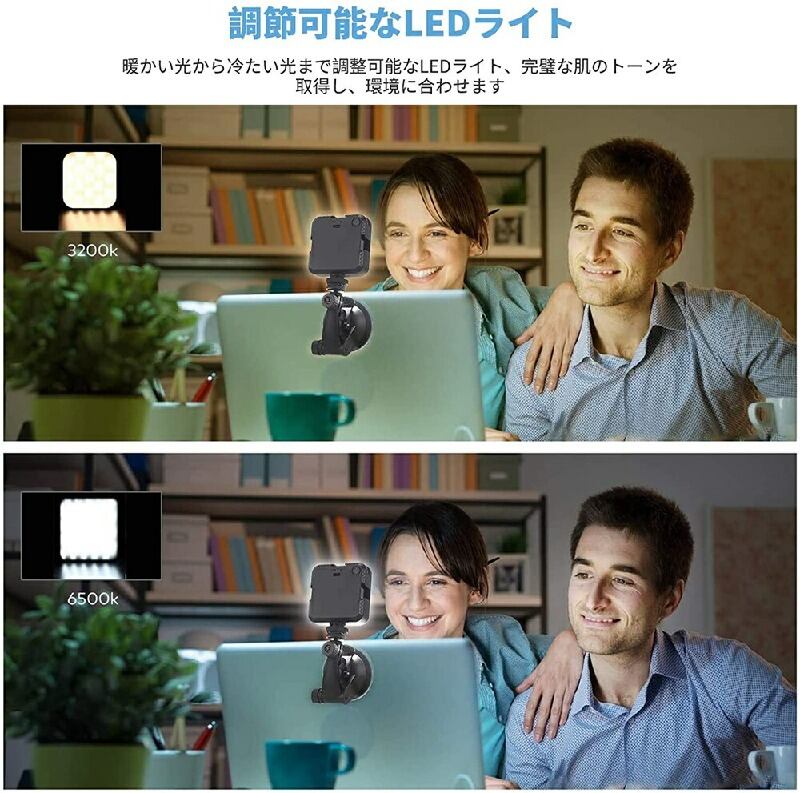 LED ビデオライト オンライン会議ライト 2000mAh 色温度調整可能 スマート カメラライト 補助照明 撮影用ライト調光 調色 角度調整 美顔 自撮り補助光 カメラビデオ写真撮影用照明