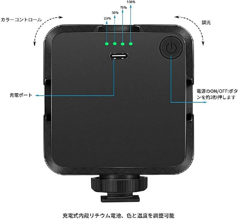 【無段階調光&色温度自由調節】ズーム照明を1%〜100%の明るさに制御して、セットアップに最適な照明を取得します。 暖かい(オレンジ)ライトから冷たい(白い)ライトに調整して、完璧な肌の色合いを取得し、環境に合わせます。LEDライトのサイズは2.5 "x 2.5" x 0.98 "です。非常に軽くて小さいです。持ち運びが簡単です。