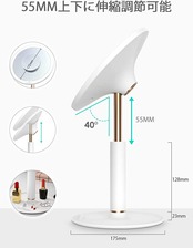 【精巧な伸縮構造 角度と高度の調整可能】 本品は40°角度調整可能でございます。マスカラを塗るときなど、メイク中鏡の角度を変えたいときには自由に角度を変えられ、手で持ち上げたり立ち上がったりすることなく、忙しい朝でもメイクの時間を楽しくゆっくりにできます。さらに台座はの一体化デザインで、口紅などのメーク道具を放置でき、日頃のメークにより便利な体験を提供いたします。精巧な伸縮構造は、軽量アルミニウム材及び陽極酸化プロセスを採用し、防錆びで耐摩耗性も抜群で、手触りが快適です。0-55 mm縦方向に調整でき、異なる身長に対応でき、高品質伸縮構造を採用し、実験室条件下で1000回繰り返し昇降した後も手触りは滑らかです。