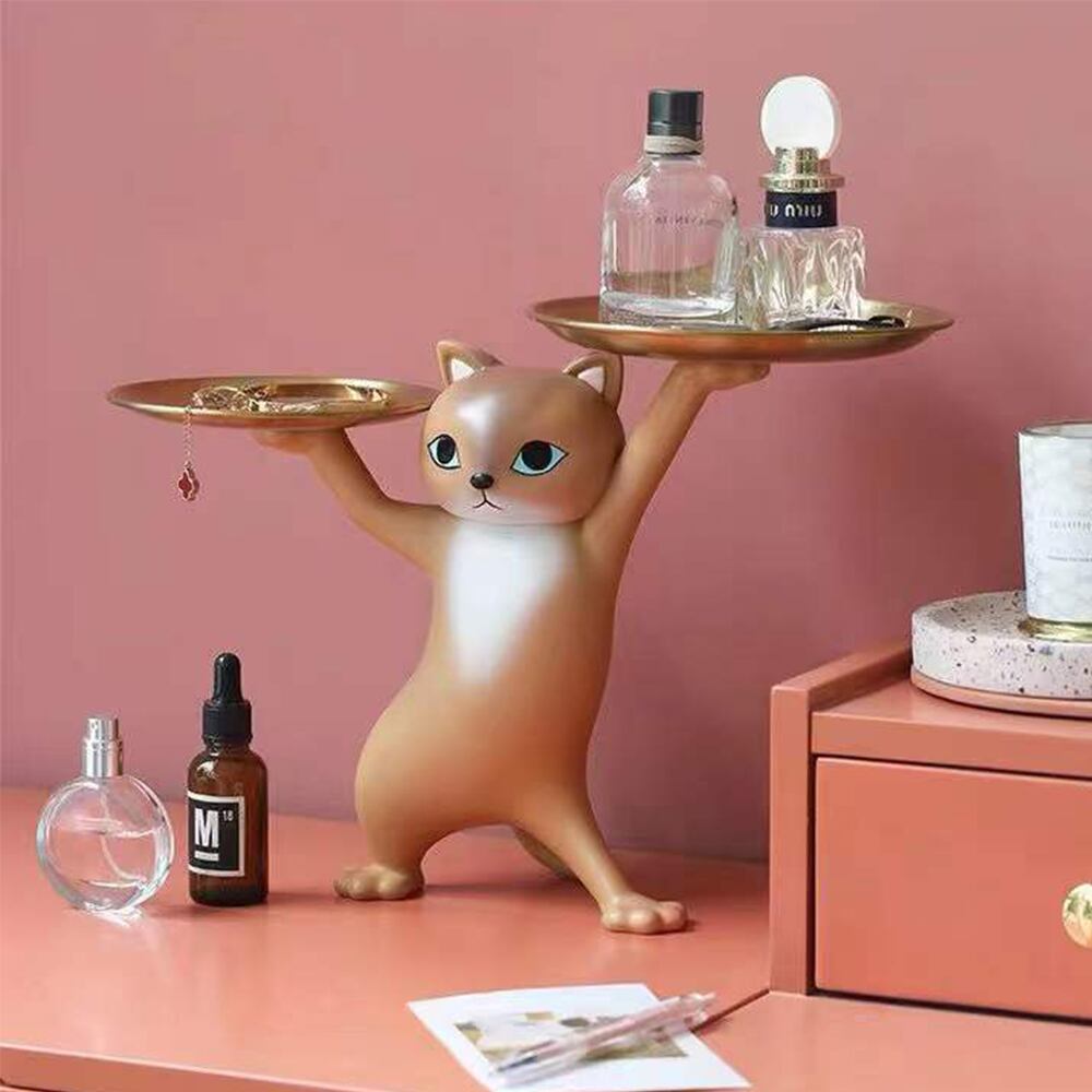 皿を捧げるネコ ねこ 猫ちゃん キー収納 金属 トレイ 鍵置きホビー アート 美術品 骨董品 民芸品 工芸品 民芸品