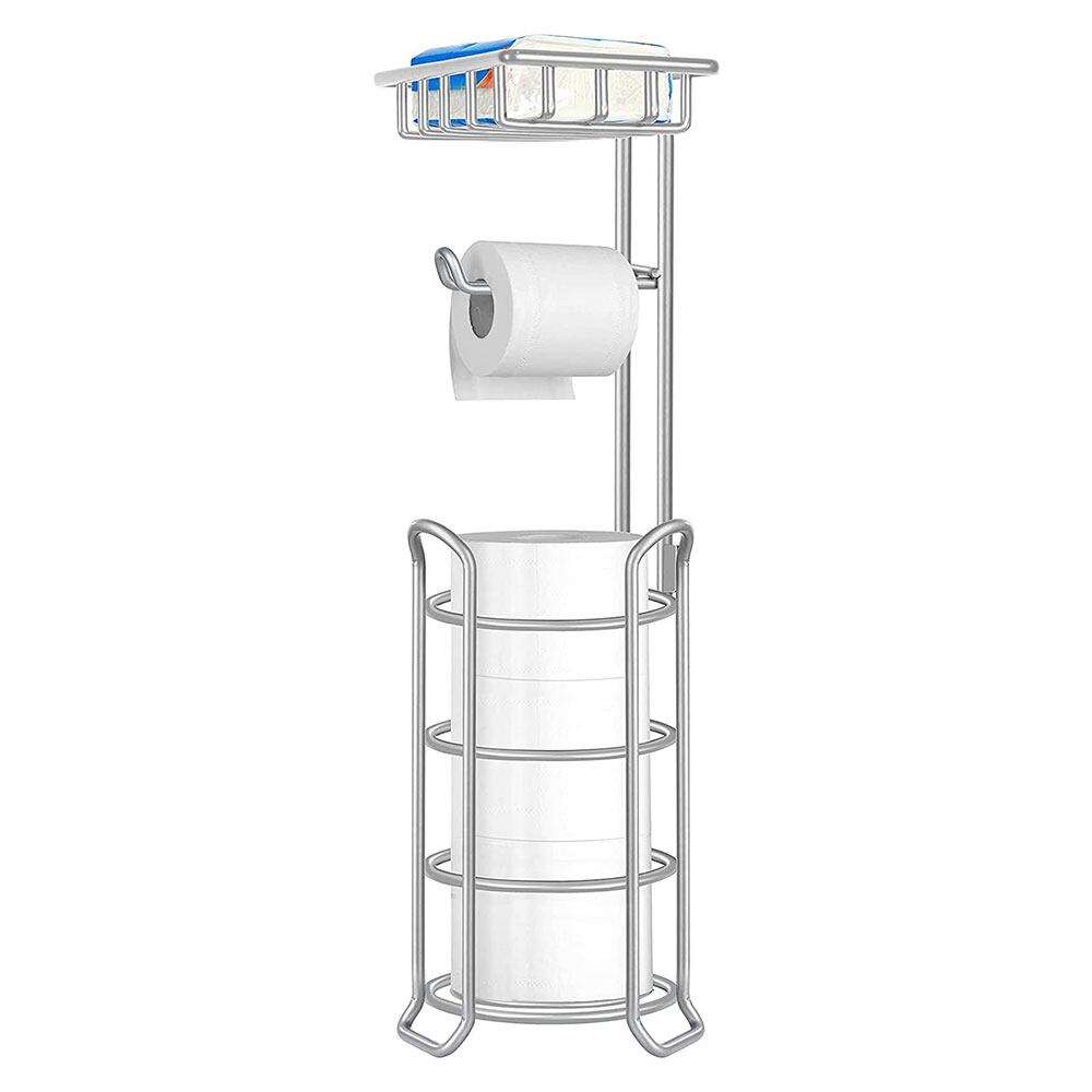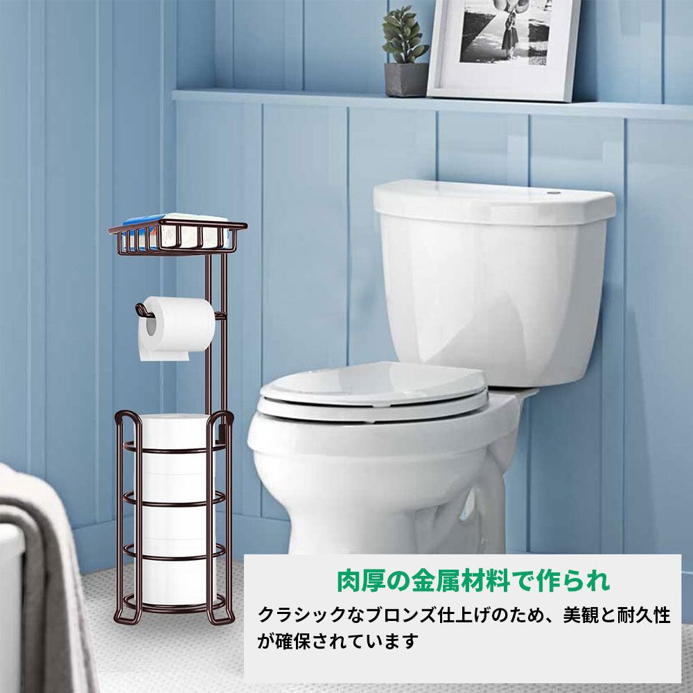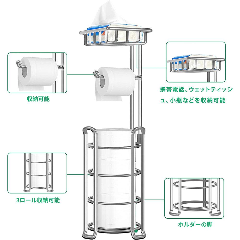 優雅なデザイン:ホルダーの脚は安定して自立します。トイレットペーパーをはトイレの床面から高さが確保されるため、トイレットペーパーが清潔で乾燥した状態に保つことができます。付属の棚は、携帯電話、小瓶、本などを置くことができるように設計されています。