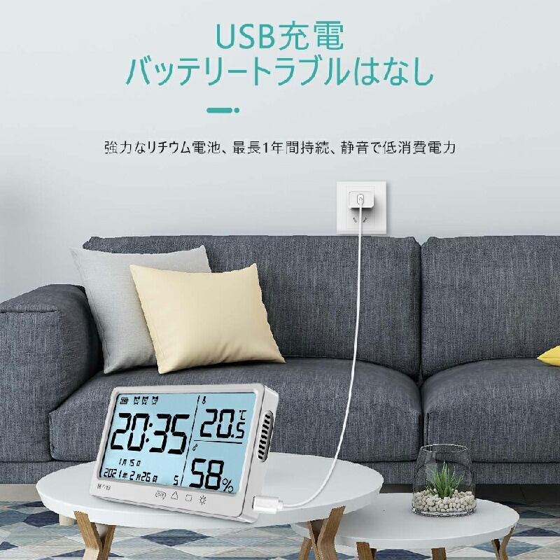 デジタル湿度計 デジタル時計 温度計 時計 室内室外 USB充電式温湿度計 LCD スタンド 壁掛け 高精度 湿度計 付 室温計 赤ちゃん ベビー 小型 時計機能 温度 測定器 壁掛け 予防 熱 風邪