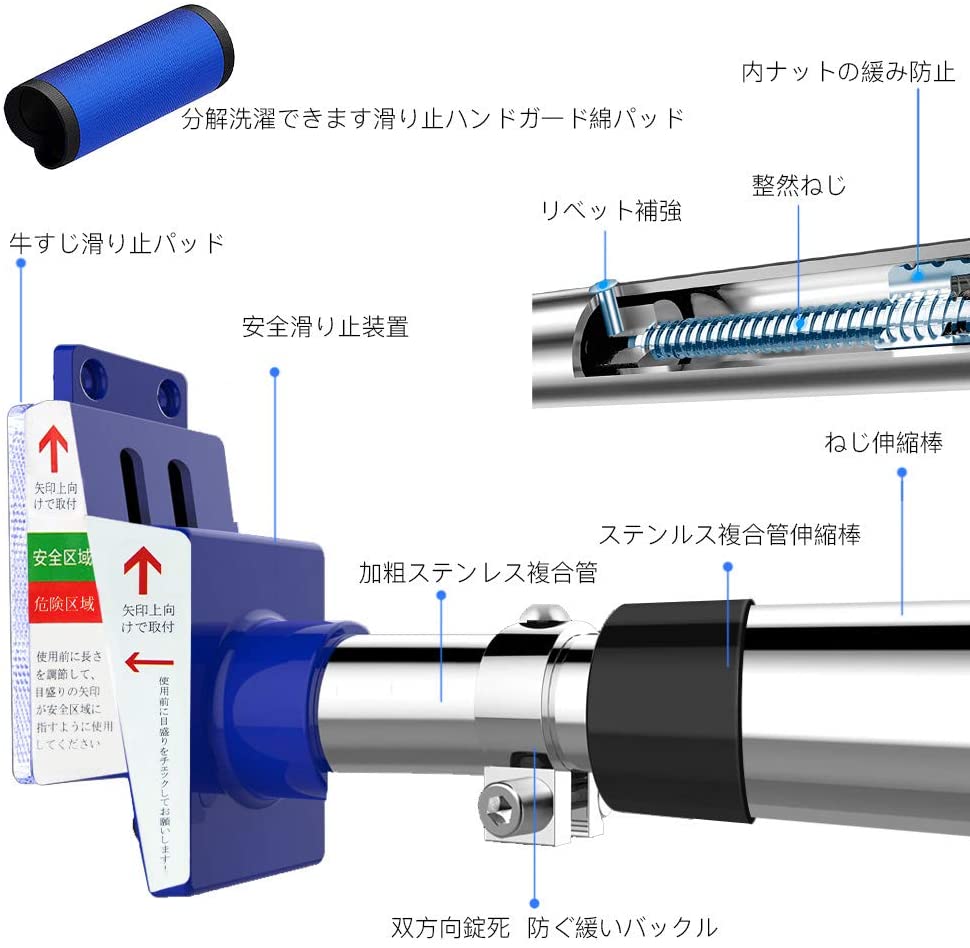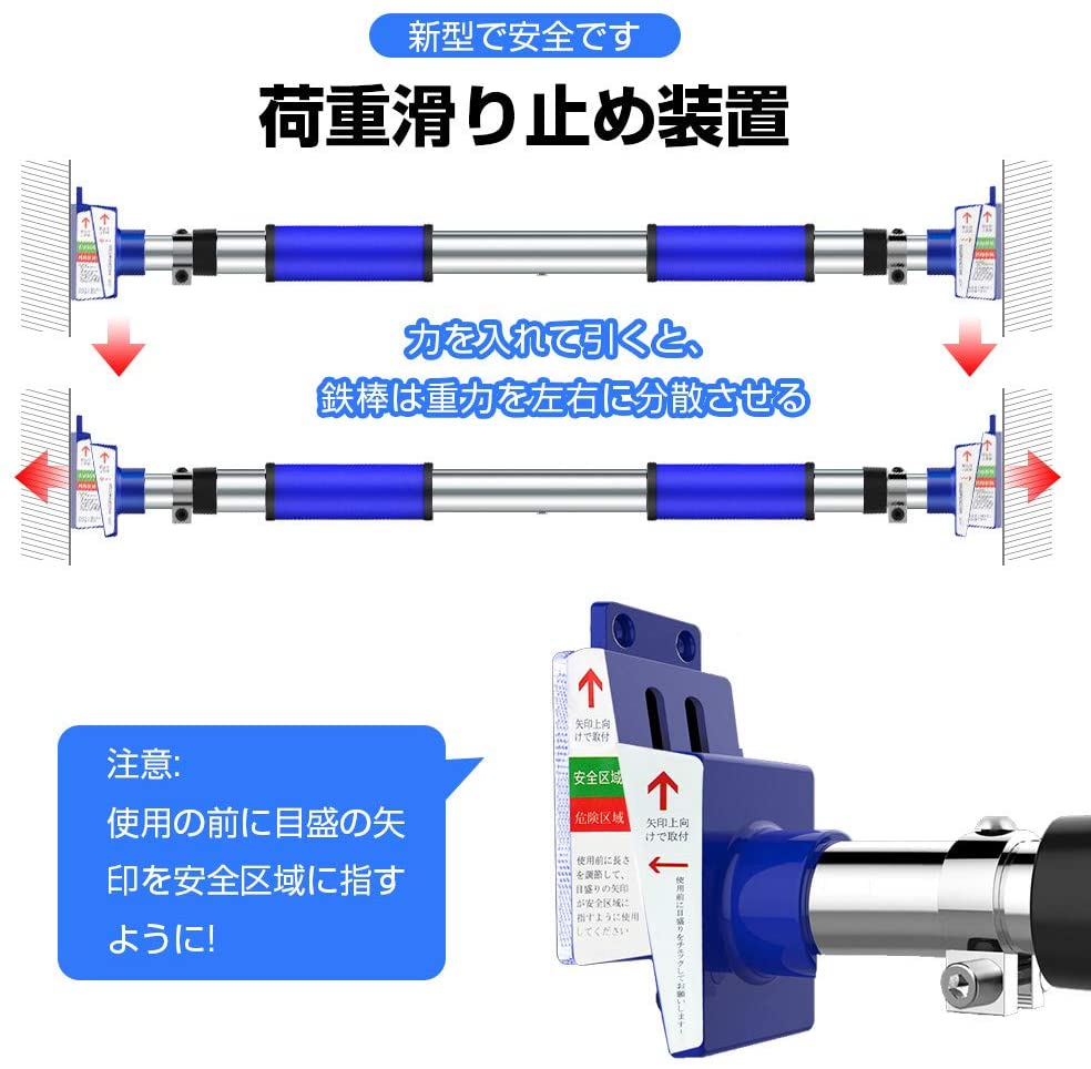【最新の懸垂バー】本体長さ約72〜93cmで調節可能。耐久重量は300kgまで、ステンレス鋼により変形しにくいです。、工具無しで設置可能、穴あけ不要、ネジ取り付けなし、バーを回転させ突っ張って固定します。
