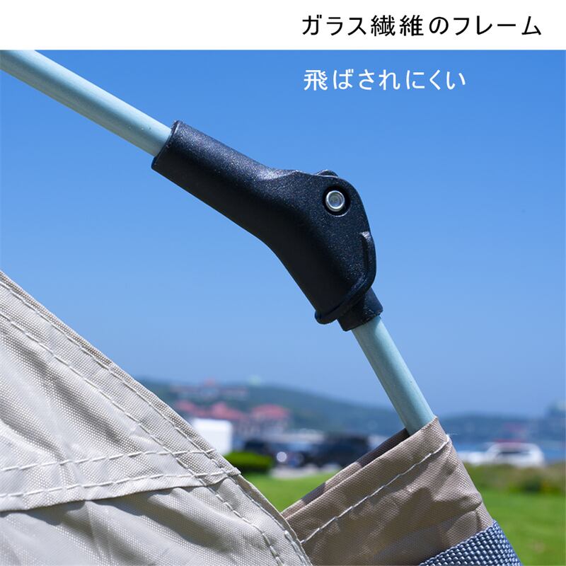 商品のご紹介展開サイズ (約)210x210x135cm収納後の重量 約5kgカラー ベージュ材質 ポリエステル付属品 固定用ロープ×6本;ペグ×6個;収納袋×1個;竿×2本注意事項 モニターにより実際の色と異なる場合がございます。デザインや仕様は予告なく変更する場合がございます。あらかじめご了承下さいませ。