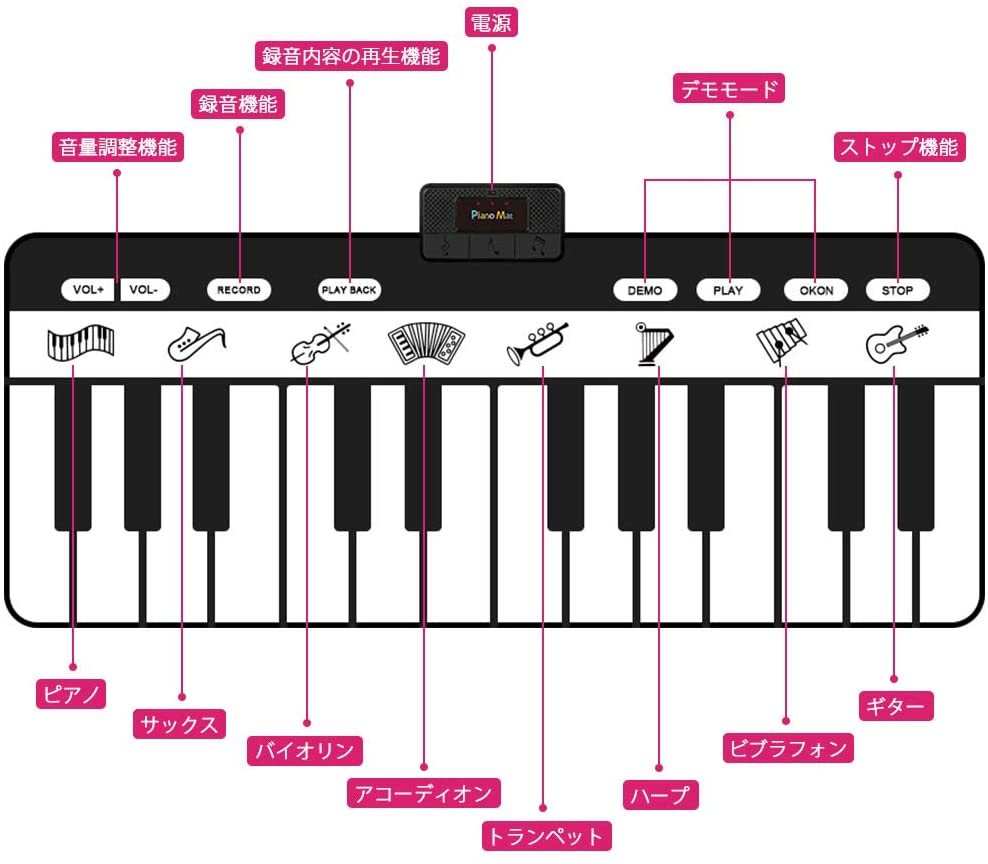 翌日出荷 ピアノマット 24鍵盤 10デモ曲 8種類楽器音 録音機能 録音再生機能おもちゃ 楽器玩具 ピアノ キーボード