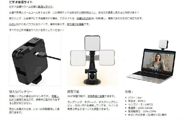 商品名 最新 オンライン会議ライト基本仕様 パワー:6w