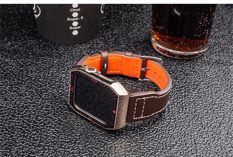 apple watch バンド 本革 保護ケース+バンドセット フレーム保護 ビジネス アップルウォッチバンド シンプル おしゃれ 45mm 44mm ステンレス 長さ調節可 金属 中性 丈夫なリング