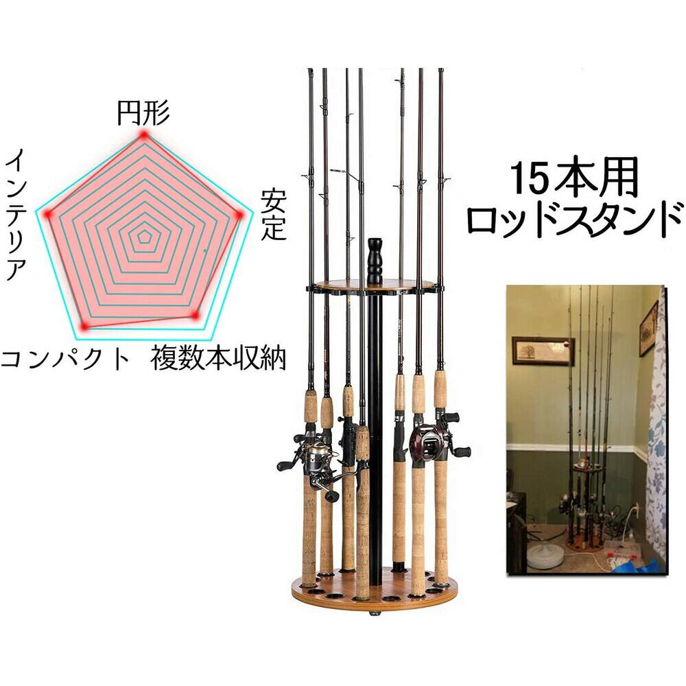 翌日出荷 ロッドスタンド 円形ロッドスタンド 回転でき 15本釣竿収納 ウッド製 ロッドホルダー 竿立て