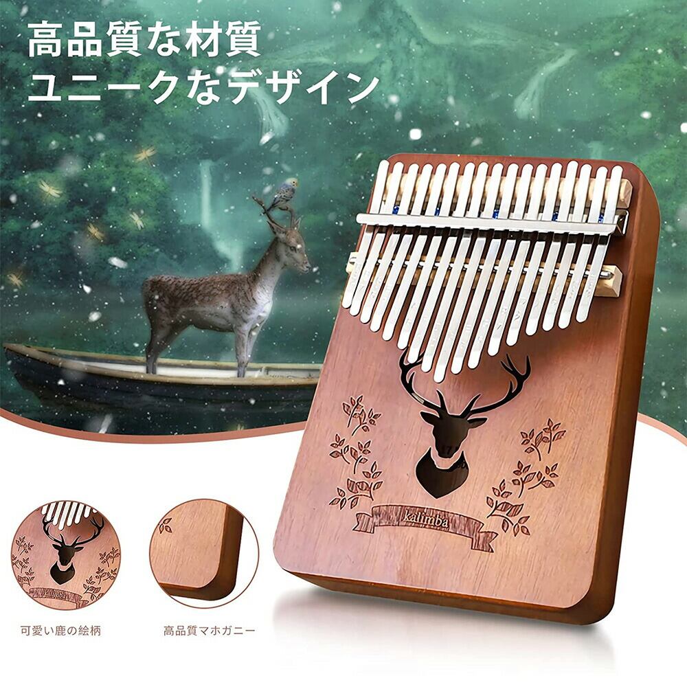 翌日出荷 カリンバ 楽器 おやゆびピアノ 17キー 親指ピアノ 鹿柄 子供用 ピアノ サムピアノ アフリカ楽器 キッズ プレゼントに最適 楽譜集付きマホガニー製 フィンガーピアノ ポータブル チューニ