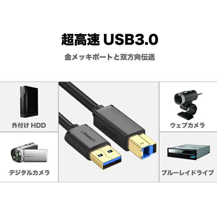 メーカー Ugreen型番 USB 3.0プリンターケーブル us210-30753商品説明 カラー:ブラック