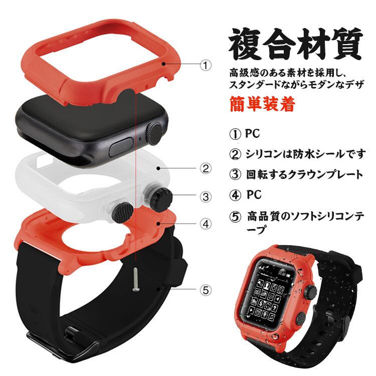 apple watch カバー防水 バンド 一体型 42mm 44mm アップルウォッチ バンドスマートフォン タブレット スマートウォッチアクセサリー