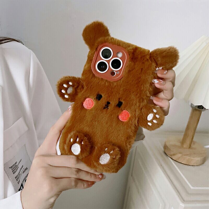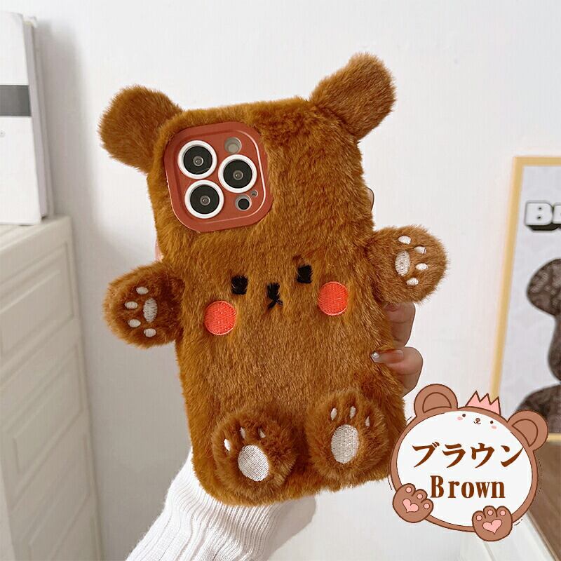 かわいいヒグマの毛皮電話ケースiPhone15pro ケース秋と冬用iphone14 pro ケース 耐衝撃 iphone13 13pro 12 11 ケー 可愛い あったか ふわふわスマホケース