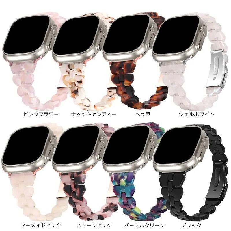 べっ甲柄が素敵なアップルウォッチ替えベ腕時計 続々入荷中アップルウォッチサイズ: 38/40/41mm 42/44/45/49mm バリエーション: マーメイドピンク ナッツキャンディー ピンクフラワー シェルホワイト べっ甲 パープルグリーン ストーンピンク ブラック