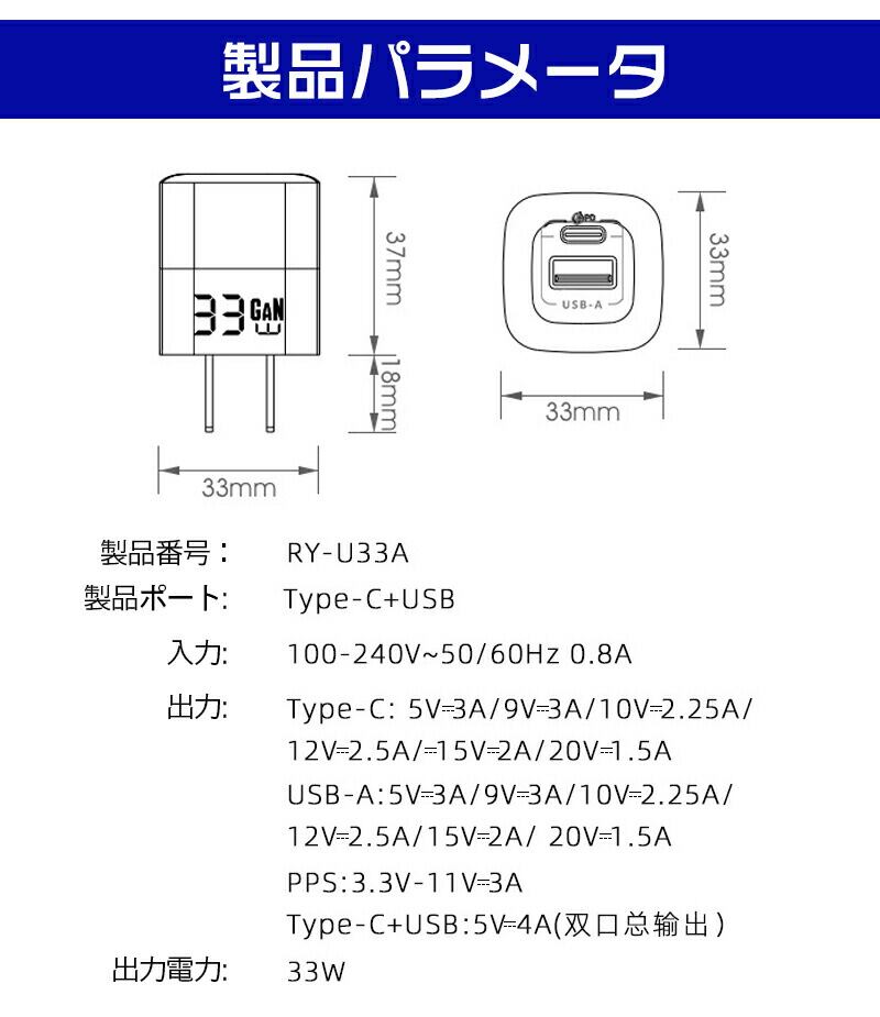 最新33W PDアタブター GaN 窒