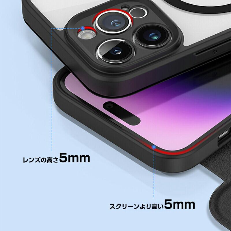 本体の薄さ、軽さを損ねない薄型・超軽量なMagSafe対応のiPhone 用手帳型ケースです。