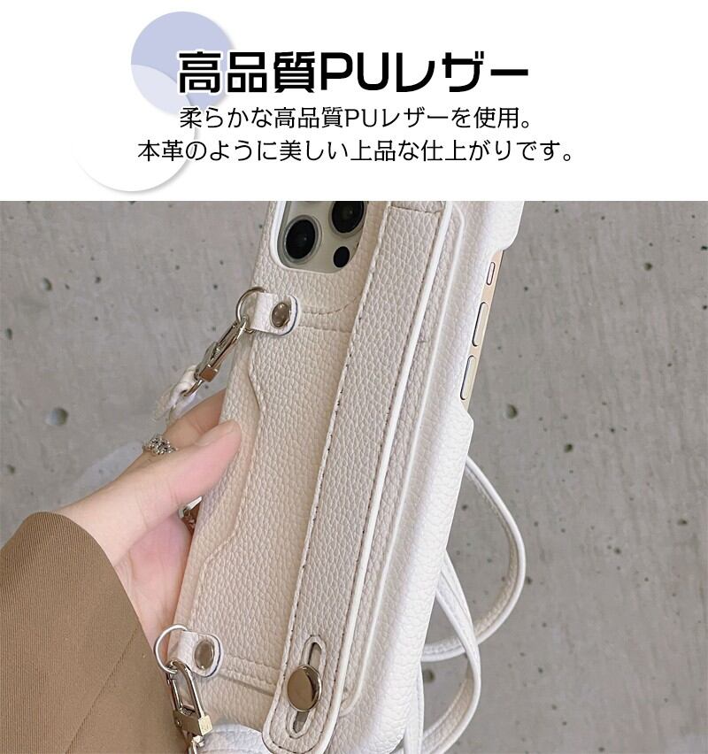 長さが調節可能なショルダーストラップ付。約120cm。肩掛けしたまま操作もできるのでスマホを無くしたり探したりする心配もありません。