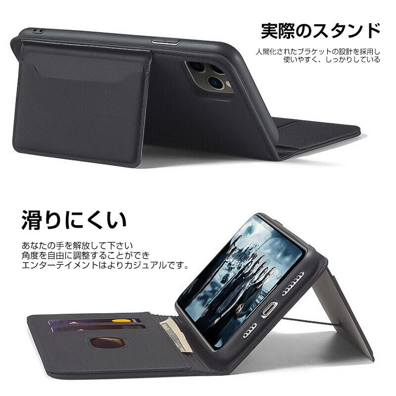 ●スタンド機能付きのカードスロット ・手ぶらで動画を楽しむスマホを手で支える必要がありません。 ・高級レザーのフラップを折り返すだけで、お好みの角度にできます。