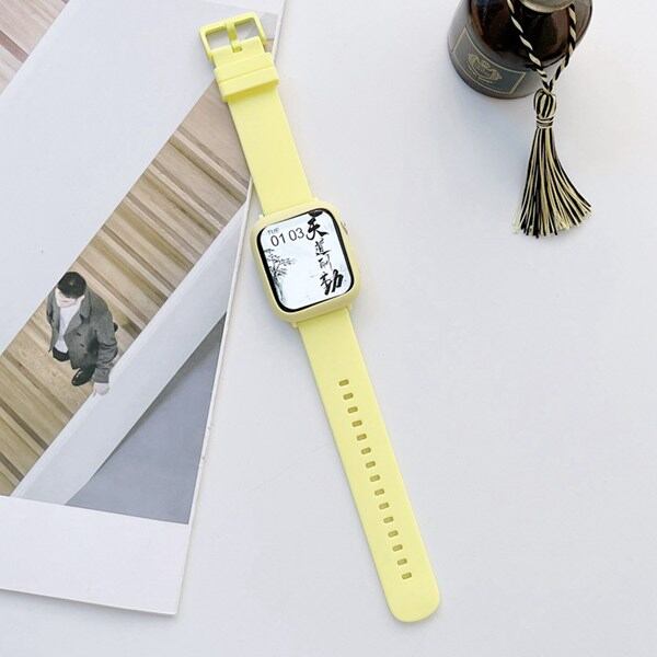Apple watch バンド シリコン 保護ケース付き フレーム保護 アップルウォッチ バンド series7 6 5 4 3 2 1 SE バンド交換 44mm 40mm 38mm 42mm 41