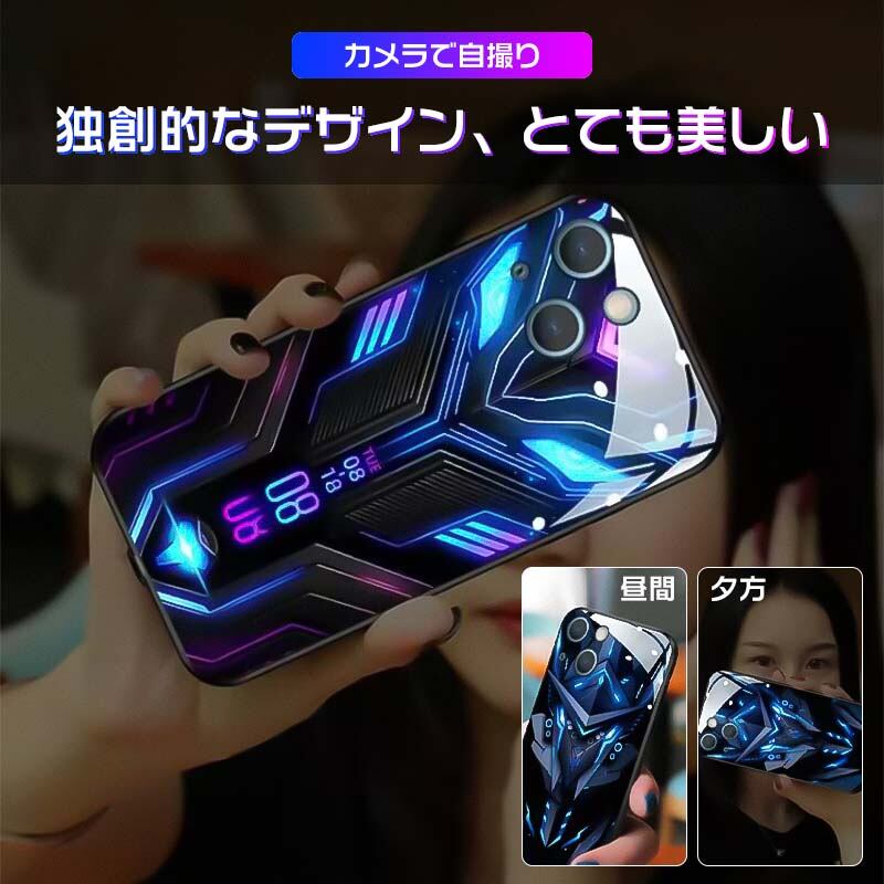 iPhone15 Pro ケースカラフルなスマート音声起動通話発光シェルケース iPhone14 ケースLED ロゴライト iPhone13 12 11ケース 強化 ガラス アイフォン 衝撃吸収 薄型