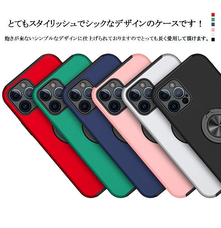 商品名 隠しリング一体型 マグネットホルダー対応 超薄 指紋防止 リング付き 耐衝撃 ケースカラー ピンク