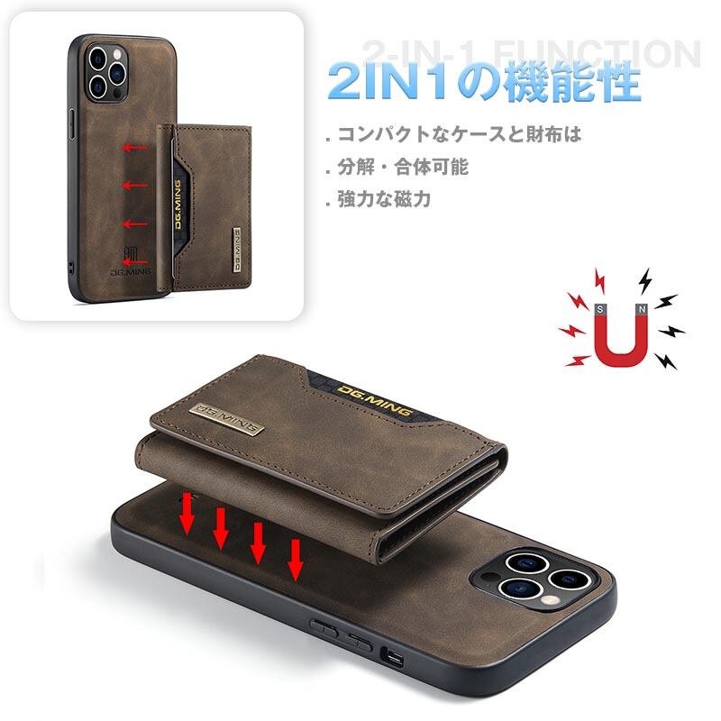 iPhone15 ケース 2 in 1 磁気取り外し可能ウォレット電話ケース iPhone14 Pro ケースマグネット内蔵 財布付きiPhone13 レトロプレミアムレザーケー iPhone12 ケ