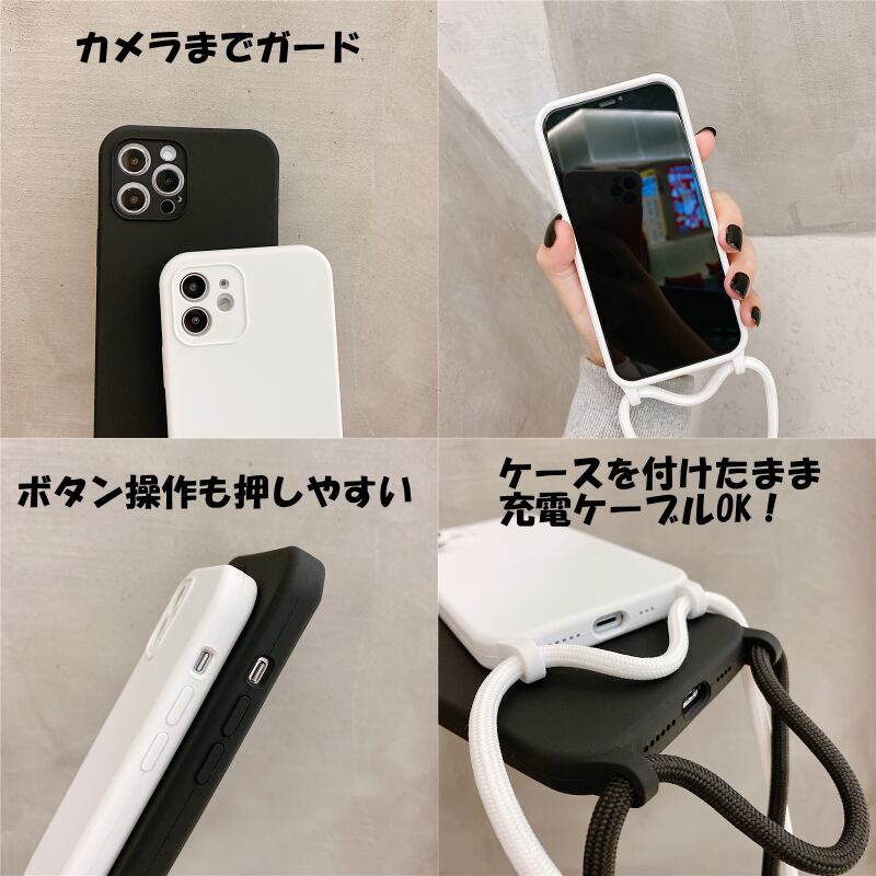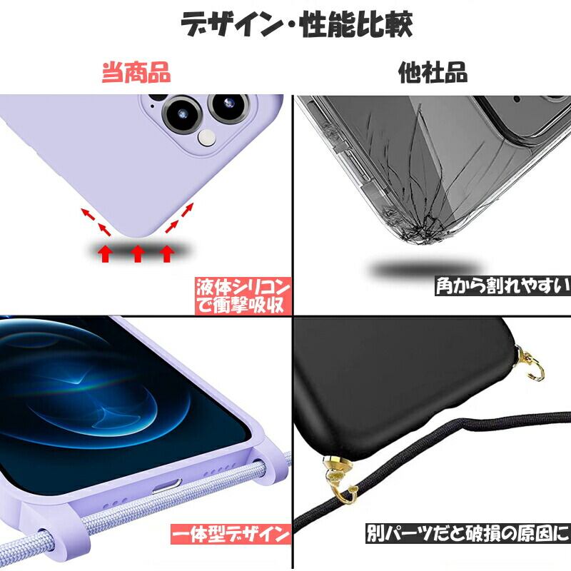 ショルダーストラップ付き シリコンケース 肩掛け、首かけで両手がフリーに ワイヤレス充電に対応 iphone14 ケース iphone13 ケース iPhone12 ケース