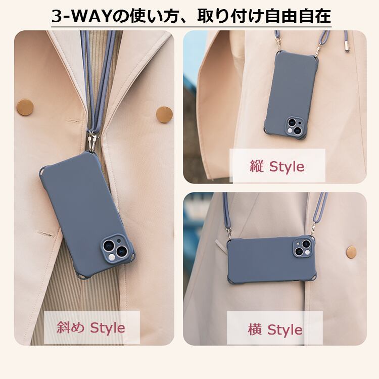 斜めがけ、肩掛け、スマホを首にかけながら使えてすごく便利。落下防止/紛失防止にも役立つ。ケースだけが必要な場合、ストラップが取り外し可能、美しさを損ねることもなし。