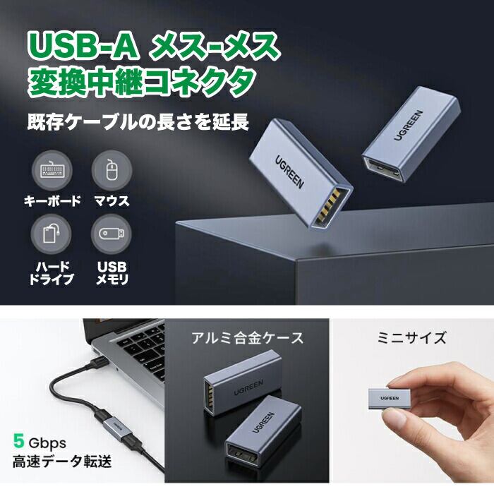 USB メス-メス変換 USB3.0 中継アダプタ 5Gbps 高速データ転送 アルミニウム製パソコン 周辺機器 PCアクセサリー 切替機 分配器 USB切替器