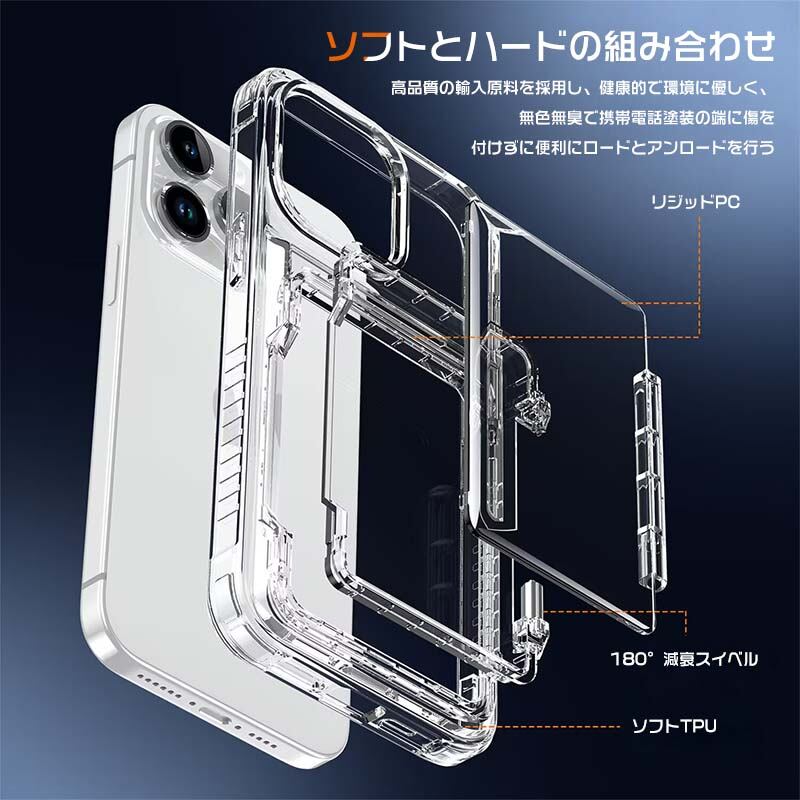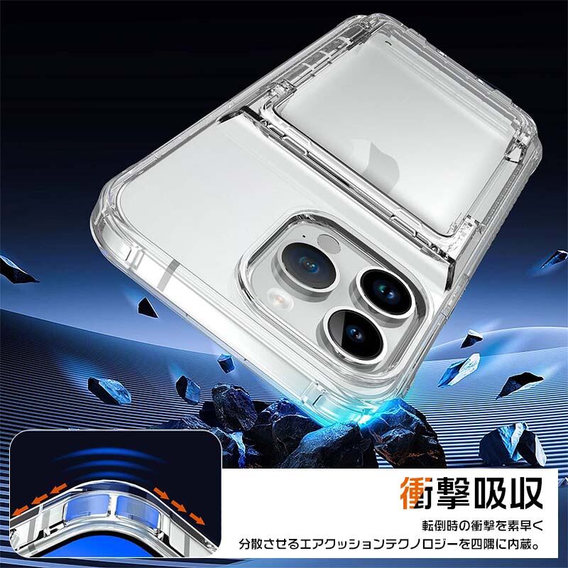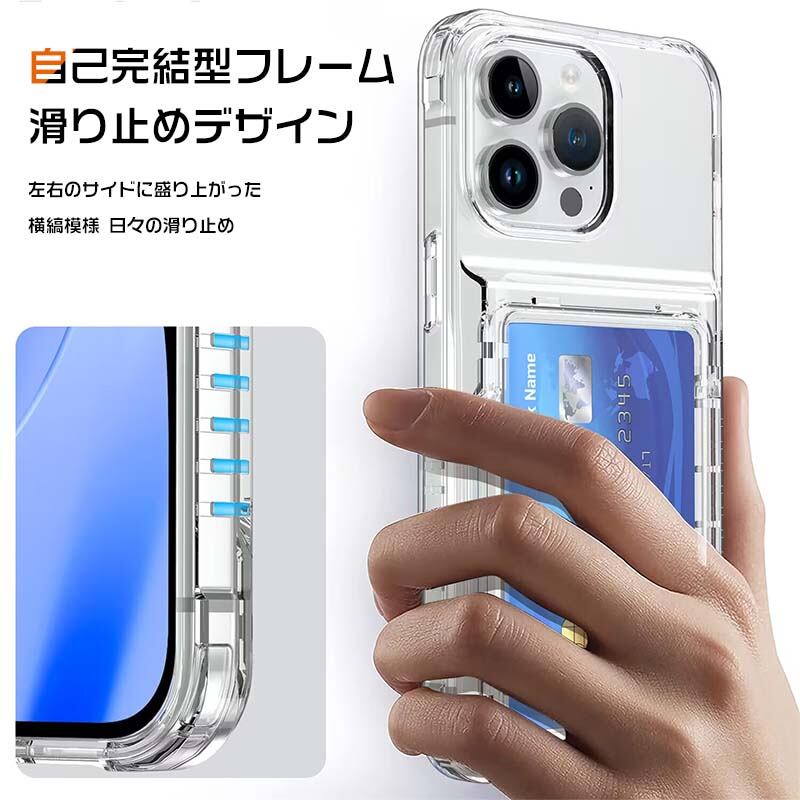 iPhone15 Pro ケース TPU&PC 背面カバー持ちやすい ケース iPhone14 ケース収納ポケット付き iPhone13 12 11ケース 落下防止 クリア 透明 爽やか 綺麗なパーソ