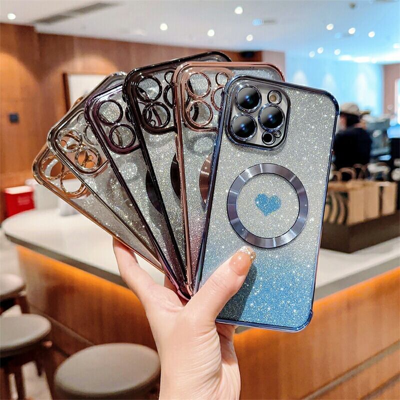 電気メッキ愛のグラデーショングリッター ケースiPhone15pro ケース MagSafe 対応 iphone14 pro ケースカメラレンズを保護 落下保護 ケース iphone13 13pro