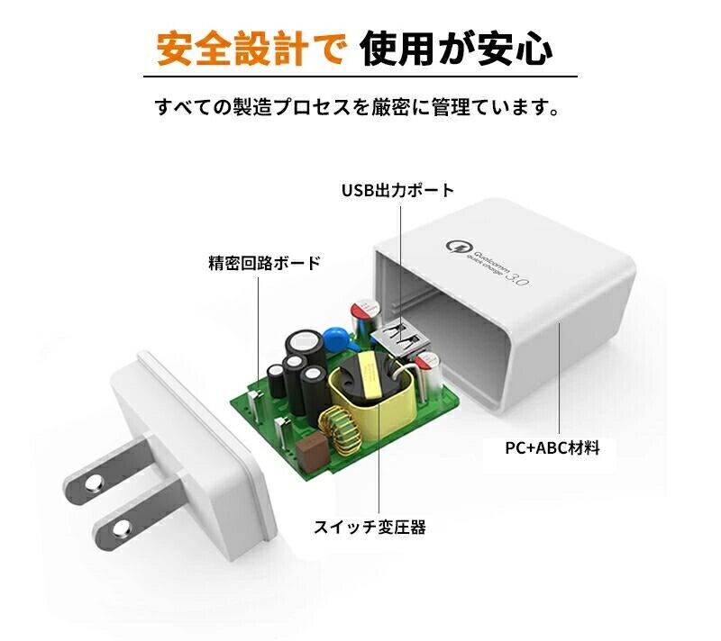 海外出張、旅行中でも充電に不安ありません。【安全設計で 使用が安心】 すべての製造プロセスを厳密に管理ています。【QC3.0 急速充電対応】 機器を自動認識し、その機器に合わせて最適な出力で急速充電を行います。