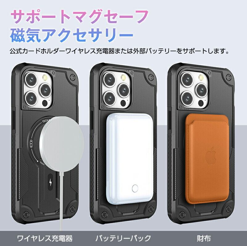 iPhone15pro ケース カバー 背面カバー ハイブリ ハードカバー iphone14 pro ケース 耐衝撃 ブラケット付き スタンド機能 iphone13 pro12 ケース Magsafe