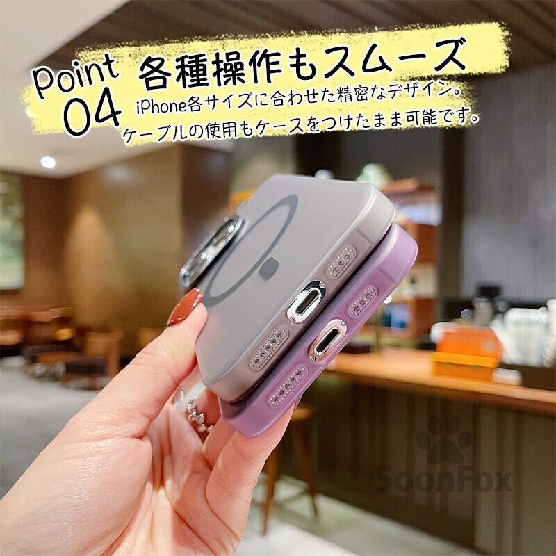 内側にマグネットを内蔵しているので、ケースを付けたままでも、ピタッと貼りつきワイヤレス充電器など各種アクセサリーの使用が可能です。