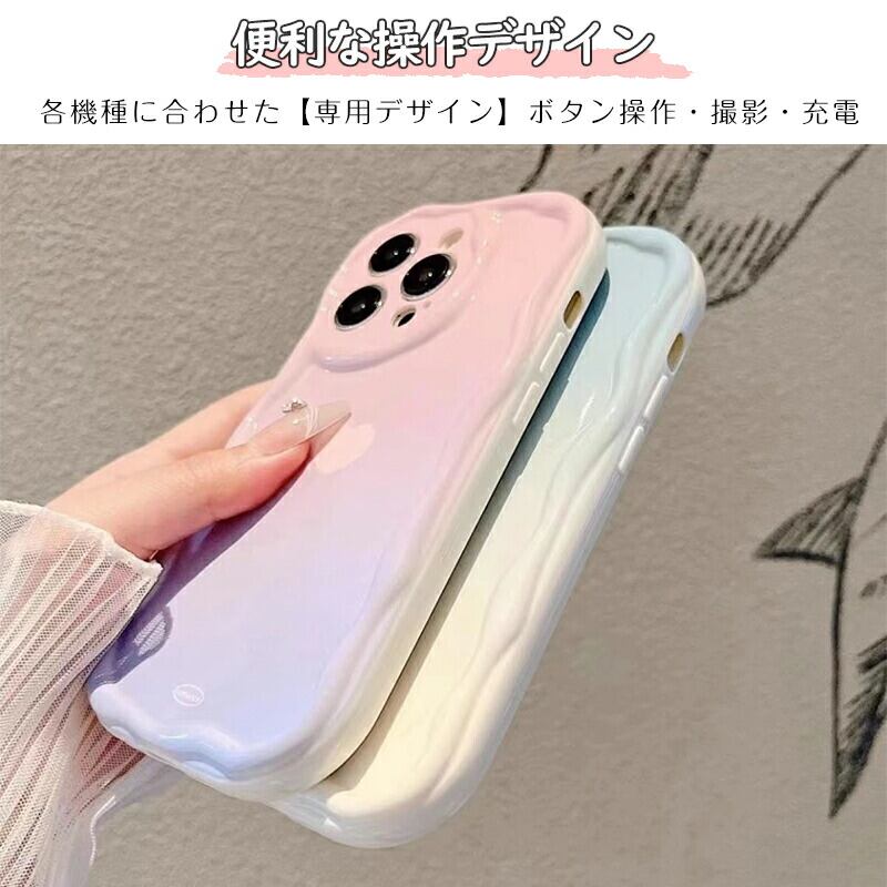 グラデーション 可愛い iPhoneケース クリア うねうね なみなみ iphone15 iphone14pro ハート柄 韓国 シリコン iphone13 12 11 ウェーブ おしゃれ SNS 大