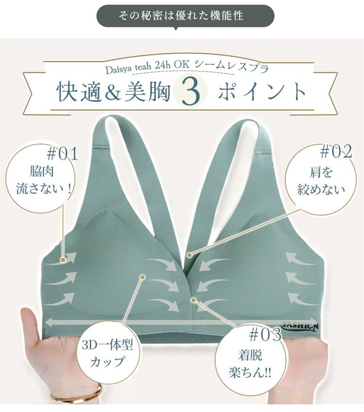 セクシーな美背中にぴったりの副乳ギャザーが集まります 空気のように快適な24時間ブラジャーノンワイヤーリラックスブラジャーです