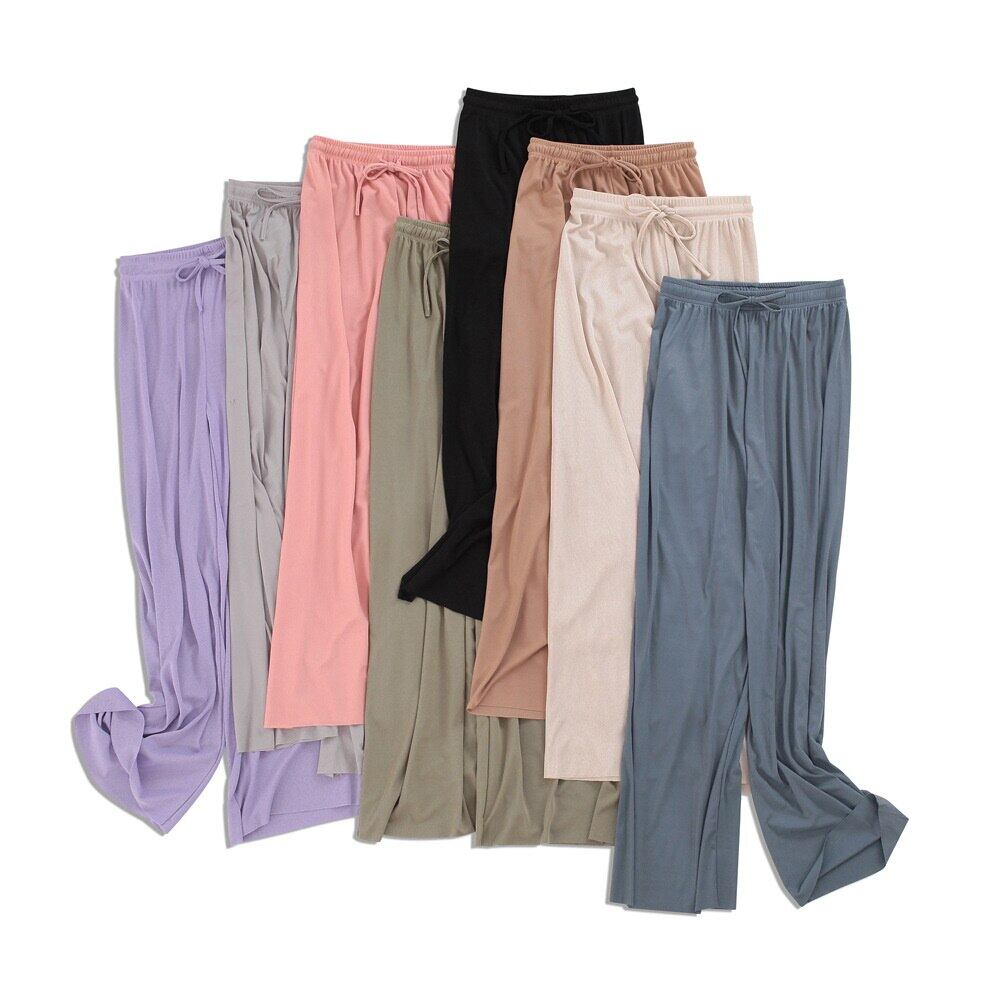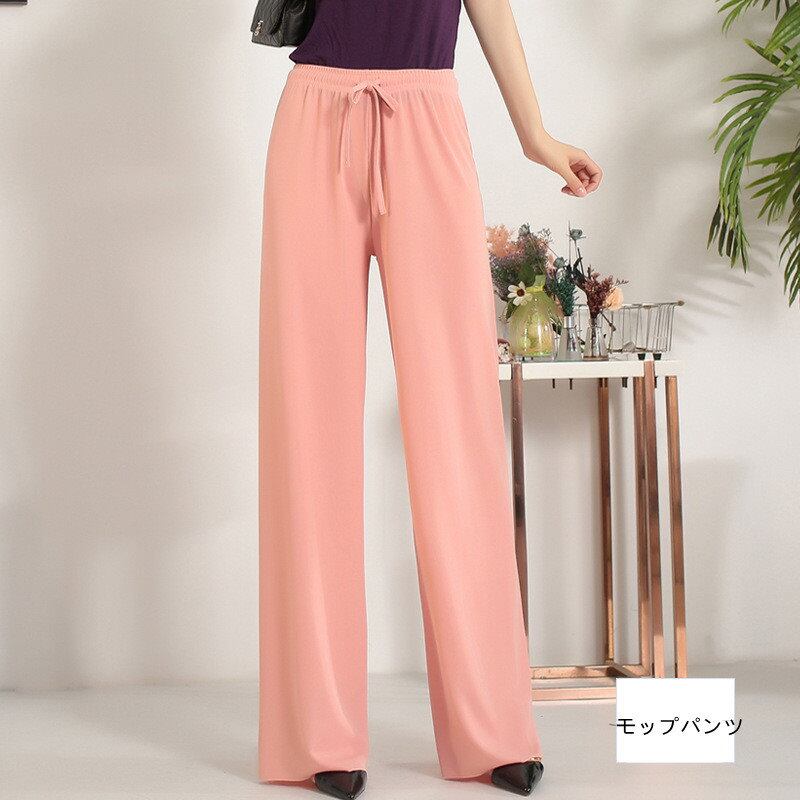 接触冷感ボトムスワイドレッグパンツレディース夏ルーズカジュアルパンツシフォンパンツジョガーパンツColor: ベージュ ピンク ブラック グリーン カーキ ブルー グレー Size: 九分丈パンツ モップパンツ