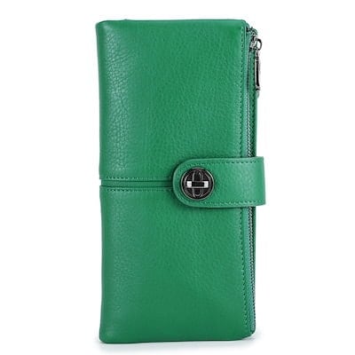 牛革レザーウォレット多機能大容量2つ折りウォレットロングウォレットコインウォレットColor: 葡萄紫 グリーン コーヒー色