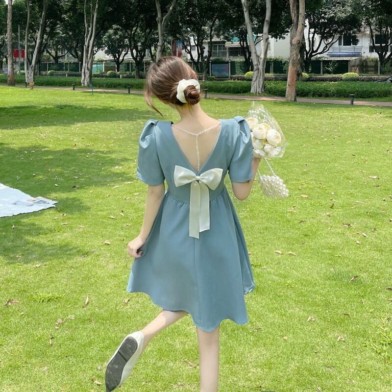 おしゃれなデザイン感蝶のウエストカットワンピースミニスカート