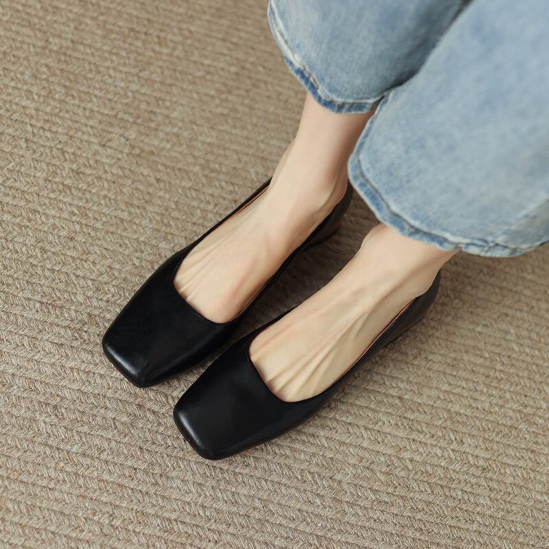 革の靴女性の浅い口2022年日本と韓国の女性の靴はすべて一致するハイヒールの革フラットサンダルバブーシュ