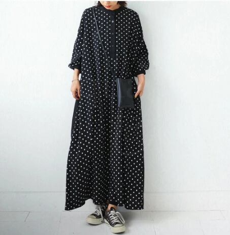 2wayワンピース長袖ロングスカートのゆったりパッチワークワンピース冬のワンピース