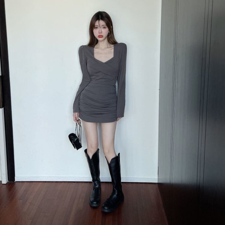 セクシーガール 高級感 着痩せ プリンセスワンピースフ着痩せワンピースウエスト引き締めワンピースミニスカートColor: ブラック グレー Size: S40-50KG M50-60KG L60-68KG XL68-76KG 2xl76-83kg