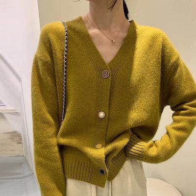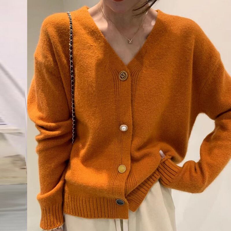 2023春夏 ニットカーデ ショートカーディガン 薄手 トップス Vネックブラウス 夏服 ゆったり かわいい 韓国ファッション エアコン服Color: 赤色 緑色 橙色 杏色