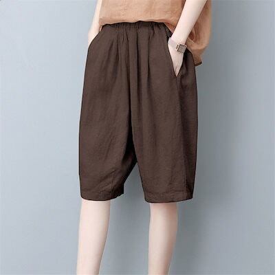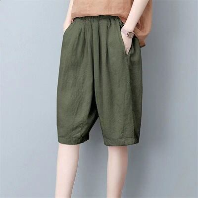 接触冷感ハーフパンツ夏7color大きめサイズハーフパンツ コットンとリネンパンツレディースルーズパンツワイドパンツリColor: ブラック コーヒー色 杏色 ホワイト ダークグリーン イエロー アーミーグリーン Size: M L XL 2XL 3XL 4XL