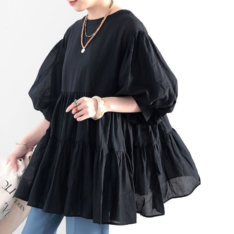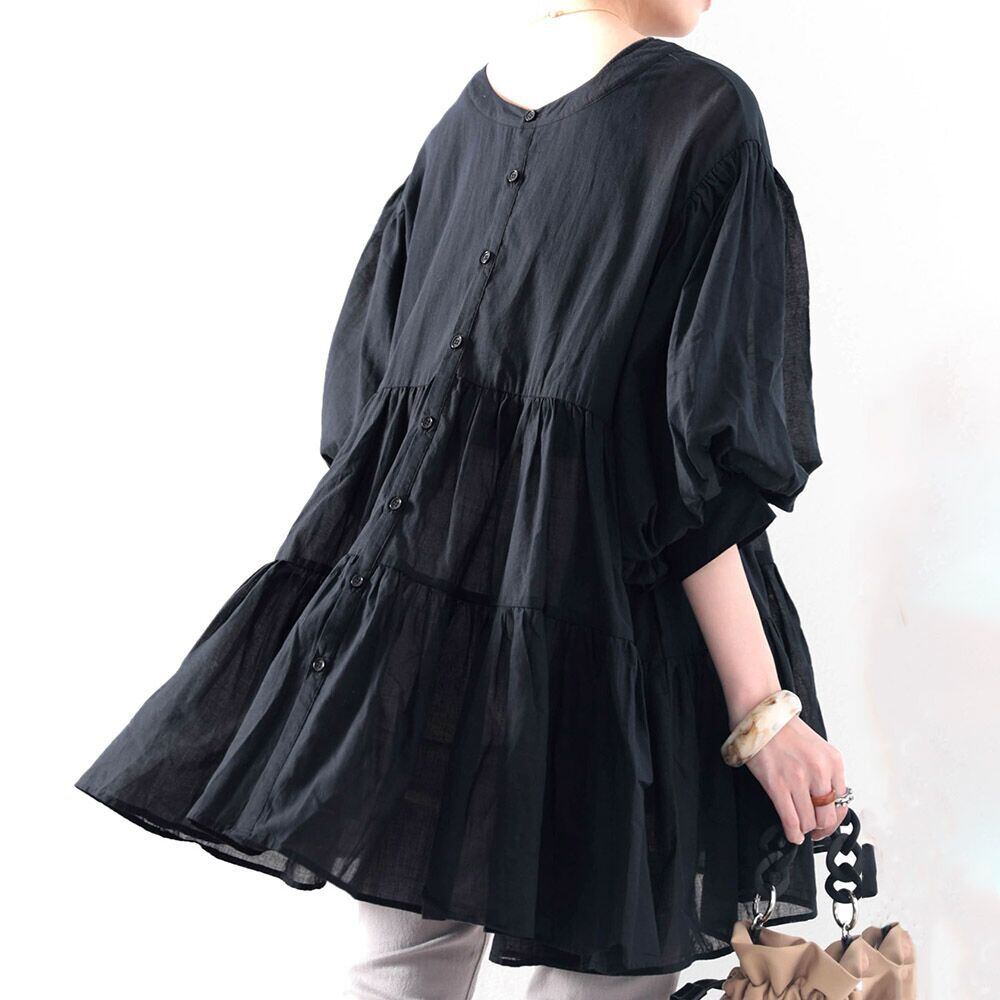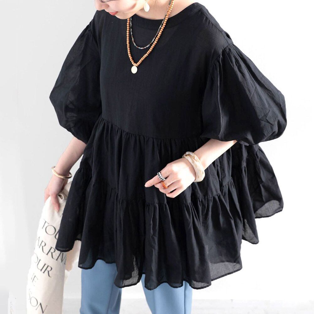 体型カバー チュニック フリル お尻すっぽり 前後 2着WAY ブラウス レディース チュニック 日焼け止め