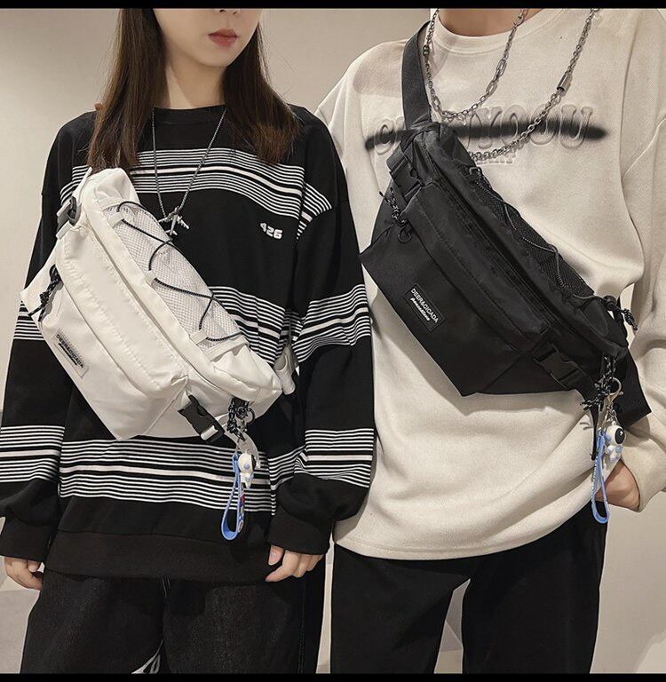 カップル ボディバッグ ナイロンバッグ 網デザイン 撥水 ショルダーバッグ 男女兼用 スマホポーチ ミニ ミニバッグカラー: ホワイト ブラック