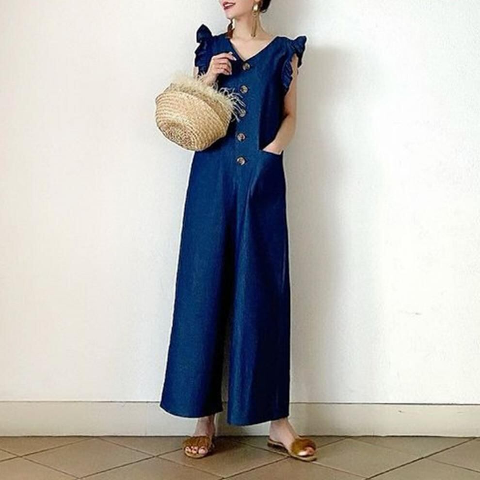 ノースリーブ 春夏 オールインワン シャツワンピース風 レディース ロングパンツ