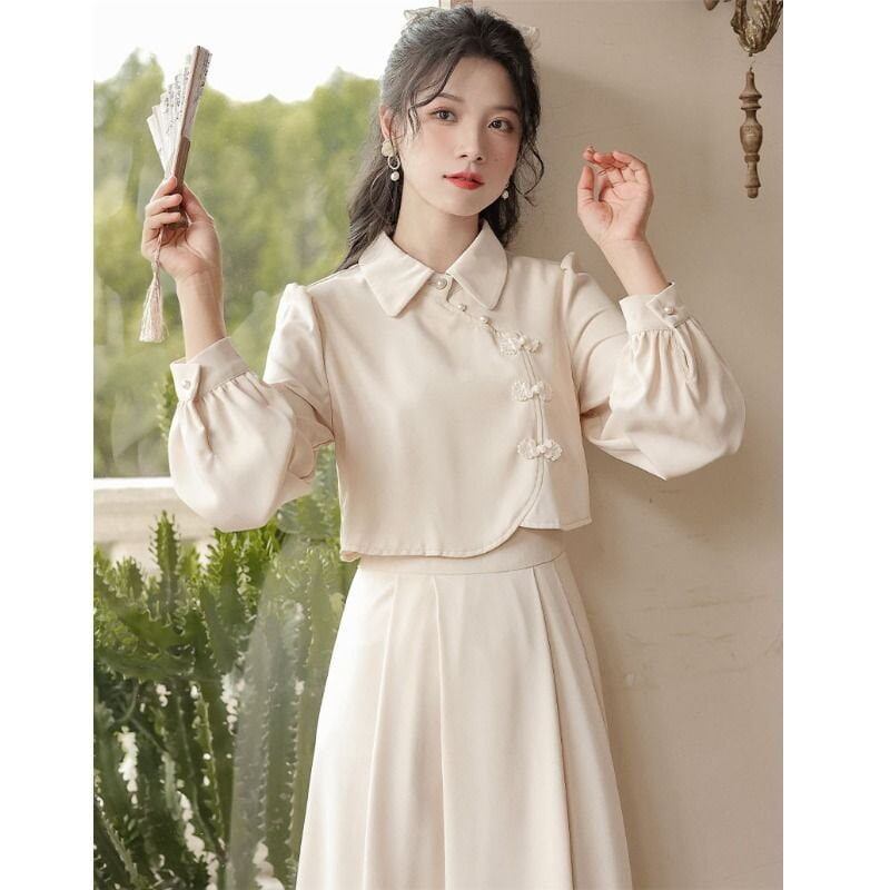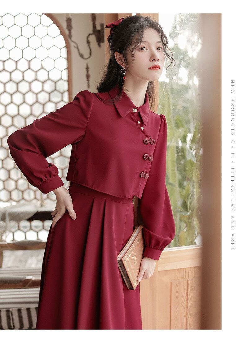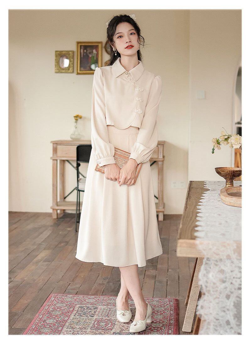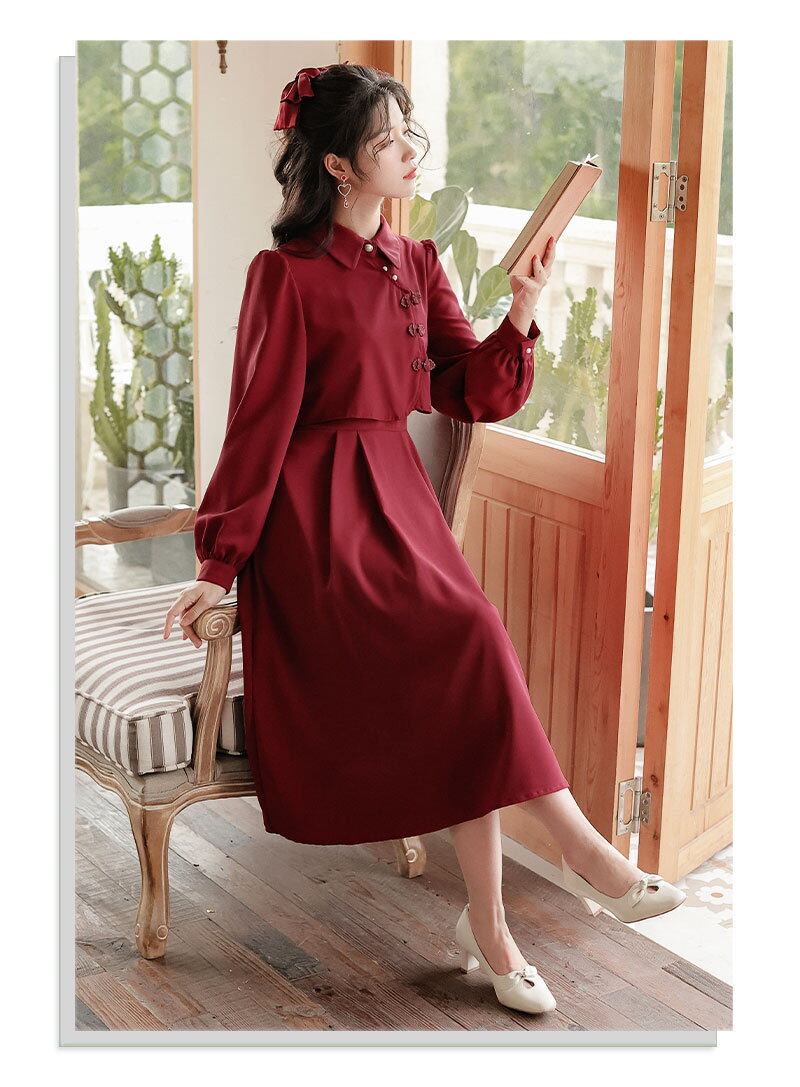 古風 ワンピース レトロ 中華風 チャイナドレス 偽2セット Aライン スウィート レディースワンピース 日焼け止め ロングワンピースColor: アプリコット(人気) ワインレッド(人気) ライトグリーン「高品質版」 アプリコット「高品質版」 ワインレッド「高品質版」 Size: S M L XL