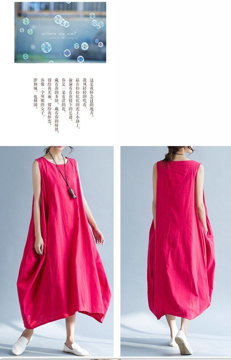 ノースリーブ 綿麻 ワンピ 夏 レディース 袋付き Aライン 体型カバー 通気 リネンワンピース 日焼け止め ドレス ロングワンピースカラー: ホワイト レッド サイズ: M L XL 2XL
