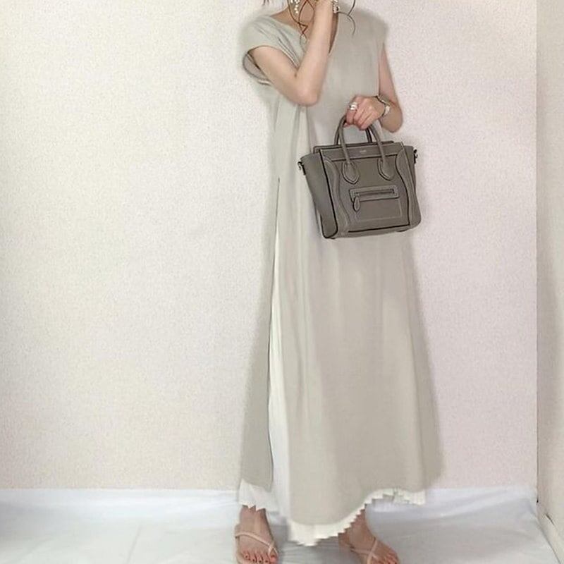 レイヤード 2セット ワンピ スリット プリーツ ゆる 夏 シンプル ノースリーブ ワンピース 日焼け止め ドレス ロングワンピース