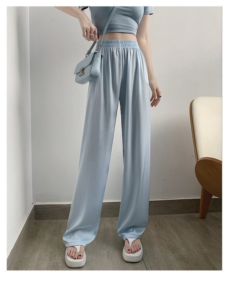 アイスシルク スーツパンツ 薄手 夏 ハイウエスト 巾着 ゴムウエスト ストレート ワイドパンツ レディース ロングパンツ 日焼け止め ジャージ ズボン メガ割